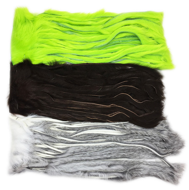 Strips are 1/8 inch wide and approx. 8 - 10 inches long. There are 20 to 25 strips in a half skin.