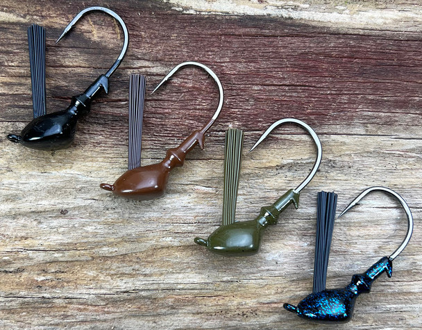 Description 5/8oz. Flippin' / Pitcnin' Weedless Bass Jig with a Heavy 5/0 Mustad 32796 black nickel hook.