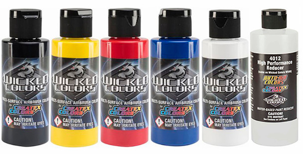 Createx Wicked Primary Set includes 1 2-ounce bottle of each of the followng: