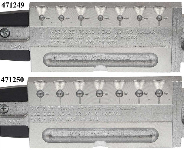 All molds use a Eagle Claw 570 style hook or a Mustad 32746 style hook.