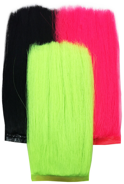 Fishair is a synthetic hair for all types of flies, jigs and lures. Fishair comes in a variety of colors from naturals to bright flourescents. Fishair is strong and durable and has a natural texture. Fishair is packaged in convenient snap apart bundles. All hair strands are sealed into a common bond on one end. No mess or loose hair, just snap off what you need and trim to the exact length.