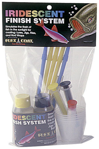The Iridescent Finish System suspends precision cut crystals in a clear, high strength Gel Coat to produce a distinctive prismatic effect similar to the flash of a baitfish. This kit allows you to control location, color, and amount of flash you require to attract your catch. The Lure Epoxy Gel Coat will allow your custom iridescent flash to last.
