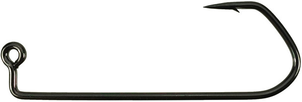 Ultra premium 90° jig hook with special VMC BARBARIAN bend, black nickel finish. The unique design of the technical locking curve allows a maximum transfer of energy towards the point while setting the hook. This results in a faster and more effortless penetration of the point and up to 25% improved hooking rate. The hook’s V shape locks the fish close to the shank, applying less pressure on the point. This prevents big fish from opening the hook and self-releasing. Tests have proven that the unique geometry of the VMC Barbarian shape increases a hook’s resistance to opening.