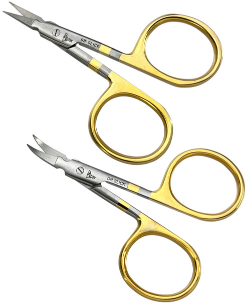 Dr. Slick Arrow scissors feature short, fine blades designed for small jigs and flies that require lots of detail work. Use the notch at the base of the blades to cut wire and lead. Excellent for natural materials and can handle most synthetics.