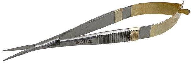 Dr. Slick Spring scissors are the ultimate one-hand wonder! No loops, just squeeze the spring arms together and the blades cut. Great scissor for detail work and in-hand tying. Excellent with natural materials and can handle most synthetics.
