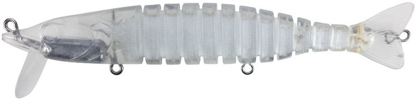 Description Unpainted hard plastic lure bodies. This lure body is a Jointed Swim Bait lure body with 12 joints. Key Information: 4.5" Approximate length 1/2oz. Approximate weight Fabric Joint Material 5/32" Lure Eye Recommended Treble Hook Size 8 Recommended