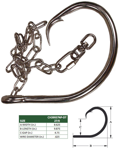 If you're looking for a big shark hook, they don't get much bigger than this. Chemically sharpened, Nor-Tempered, point curved in, two extra short, 3 extra strong, ringed, Duratin finish.