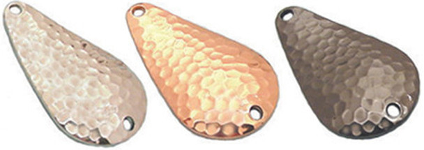 This short, heavy spoon may be used for either jigging or casting. Tear-drop shaped, stamped from thick metal. Jigging produces an erratic spinning, darting action. We recommend you use hook size 2 or 4 and split ring size 5 with this spoon. All hammered finish.