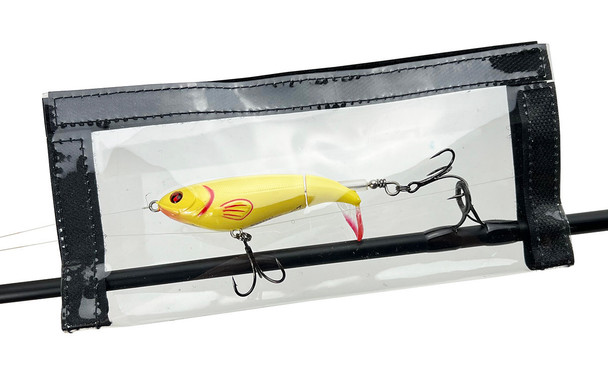 Transparent Lure Wraps are perfect for keeping your lures from hooking stuff while attached to your rod. Made from clear, durable PVC with a hook and loop closure.